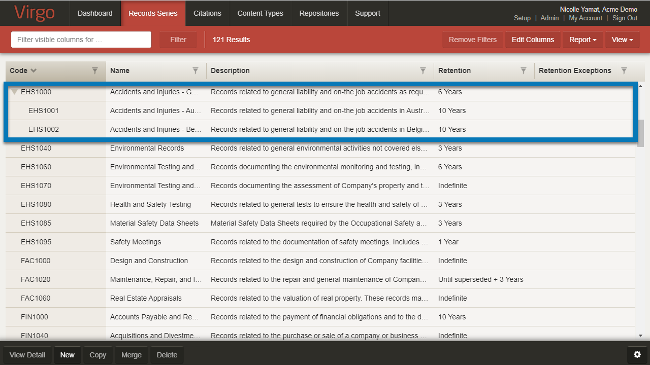 Record Series Configuration Options