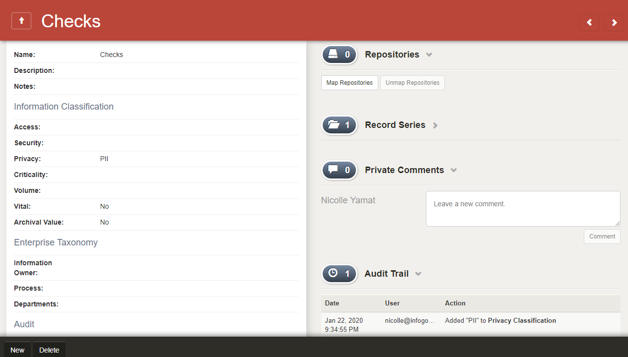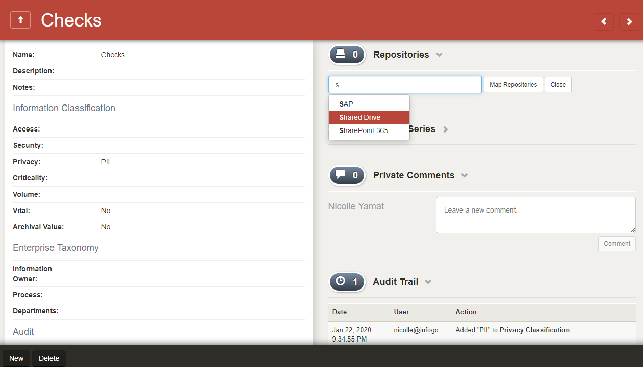 Access Unify® | Lifecycle lets you track which repositories are active in the organization, what content they are responsible to store, and whether they are holding the official record or a copy. You can see which retention rules apply to each repository and what mixture of privacy and security policies are in play. You can also use this information to manage your implementations and realign content in repositories for easier, more consistent management.