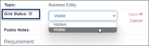 The Grid Status field determines if a citation displays or is hidden on the Citations page grid, reports, and views.