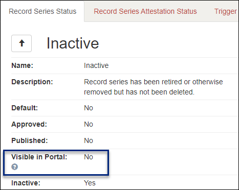 The new Visible in Portal field on the Record Series Status page indicates if a record series can display in an active Employee Portal view.