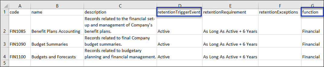 The Record Series Summary report now includes two additional columns: Retention Trigger Event and Function.