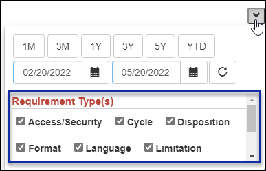 To help you quickly identify changes by citation type, the Citation Changes section of the dashboard now lets you filter by requirement type: