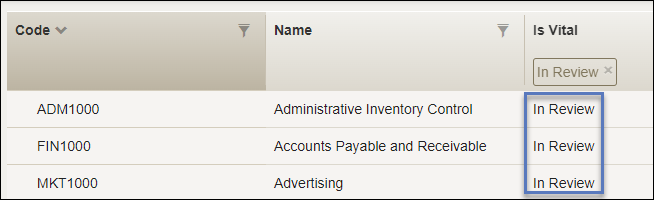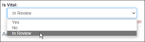 When a review process is over, a user can select Yes or No in the Is Vital field.